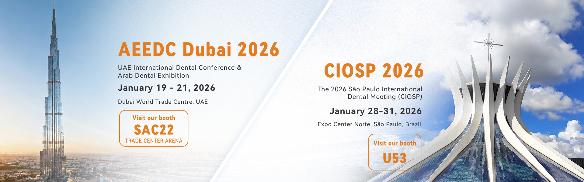 Audental рада сообщить об участии в двух ведущих международных стоматологических выставках в январе 2026 года — AEEDC Dubai и CIOSP São Paulo.